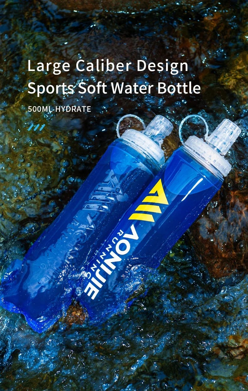 AONIJIE SD72 Frasco blando deportivo, botellas de agua plegables de TPU de 500ml para deportes al aire libre, hidratación, correr, senderismo, escalada.
