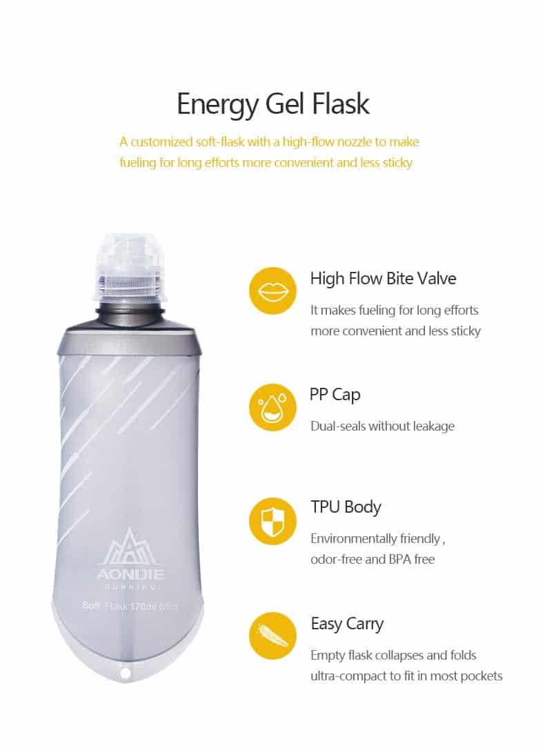Capacidad de 3 geles, por si eres de los que no se toma todo el gel de una sola, con esto podrás tomarlo de tragos, sin derramar lo que queda.