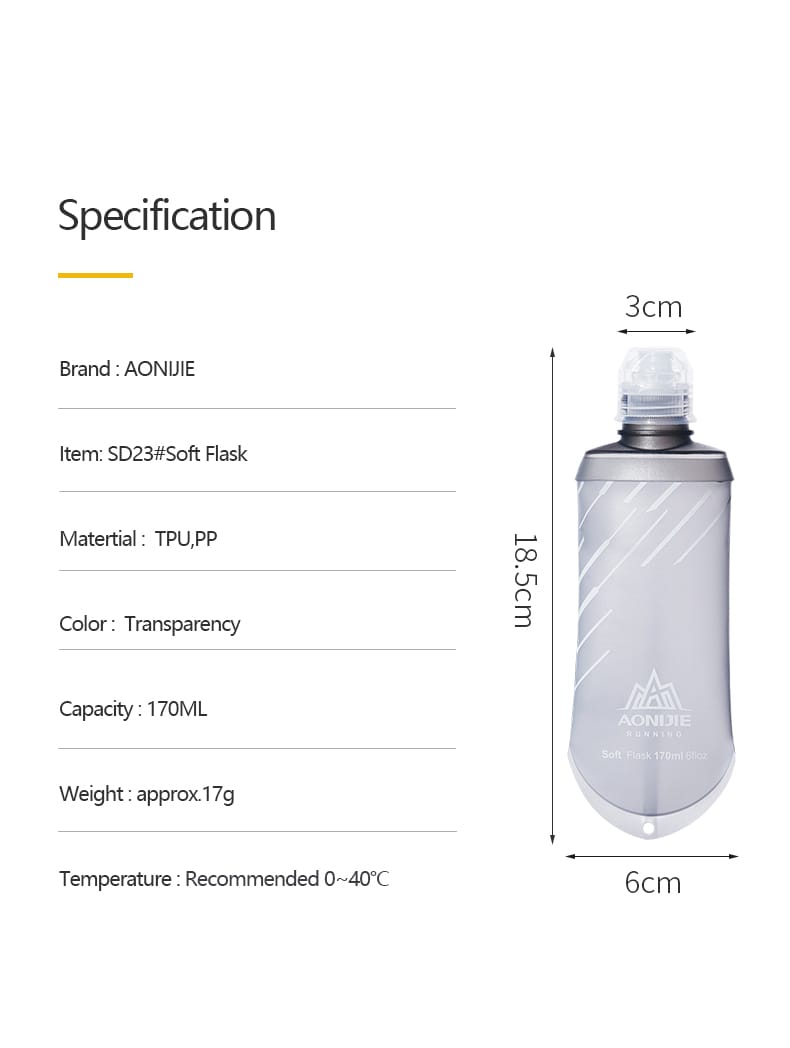 -Material: TPU, PP -Color: Transparencia -Capacidad: 170ML -Peso: aprox.17g -Temperatura: recomendada 0~40℃