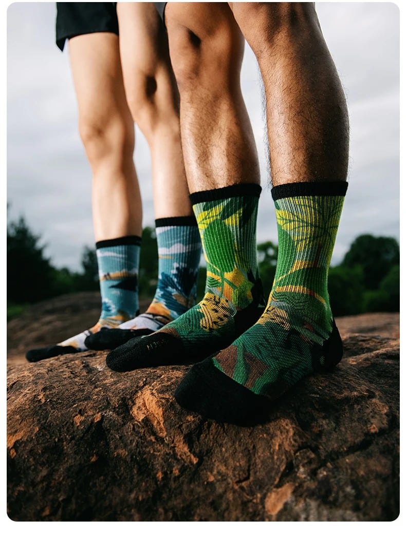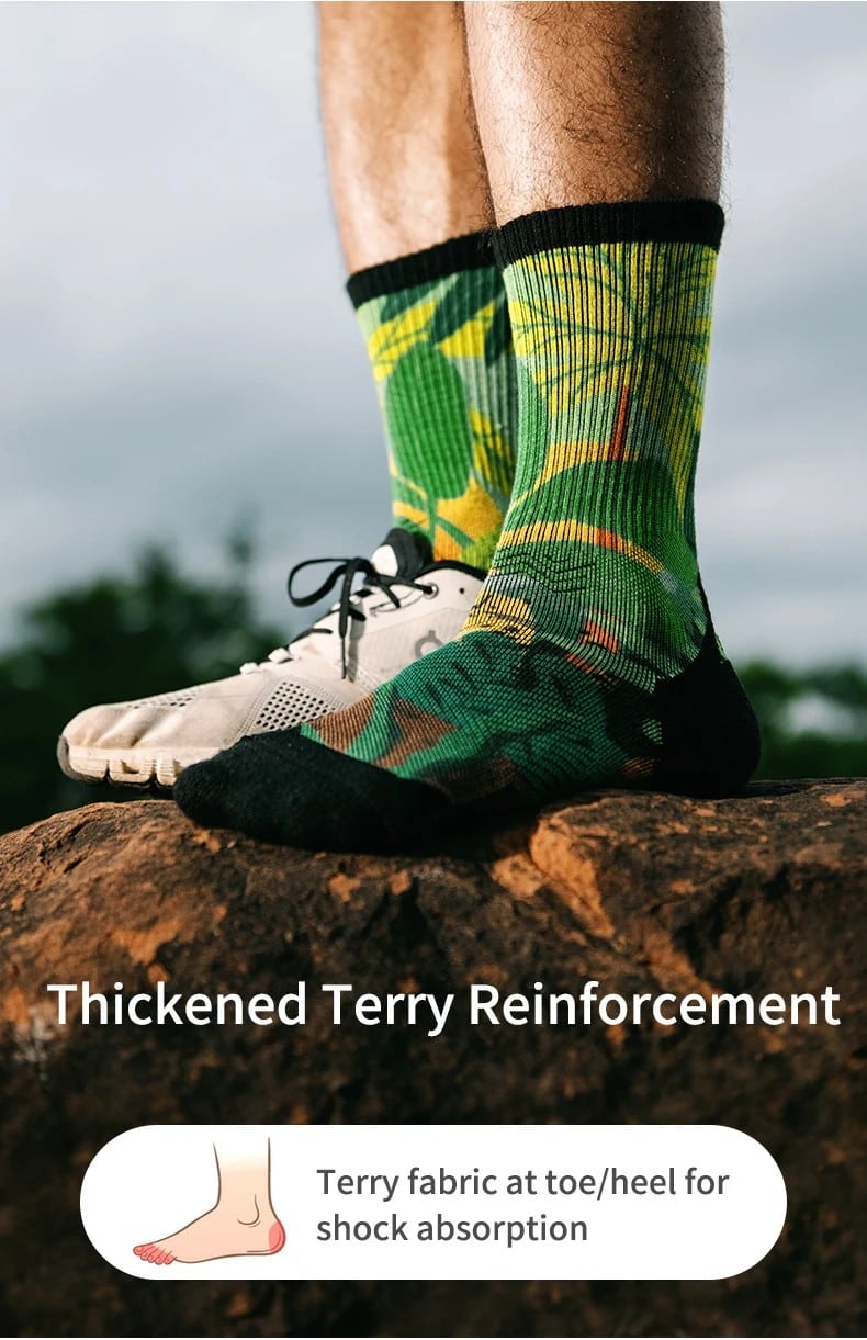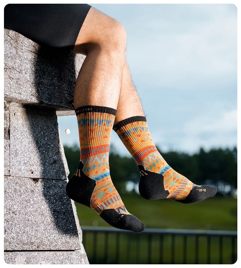 Calcetines unisex, altura al chamorro, con vibrantes patrones geométricos para mayor comodidad y estilo en actividades al aire libre.