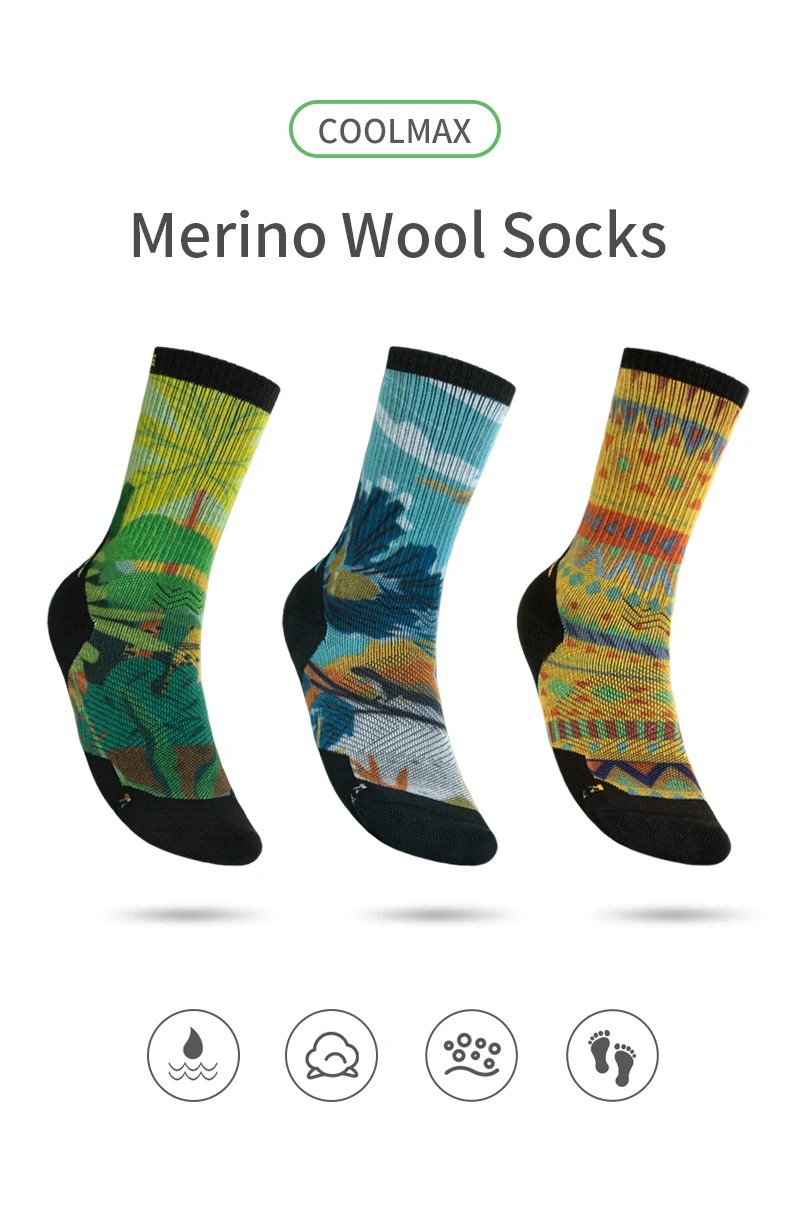 Los calcetines de lana merino AONIJIE E4847combinan un 35 % de fibra COOLMAX y un 35 % de lana merino, lo que proporciona una comodidad que absorbe la humedad, es agradable para la piel y se mantiene seco durante mucho tiempo. Con tejido de rizo acolchado, puntera sin costuras y soporte para el arco del pie, son ligeros y versátiles para trail running, senderismo y uso diario, manteniendo los pies secos y cómodos.