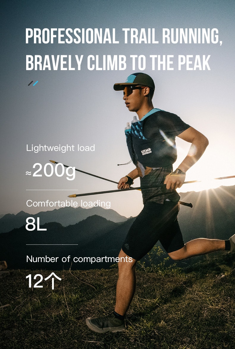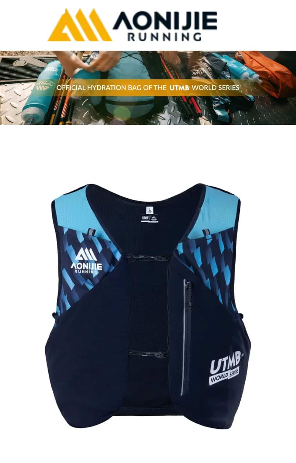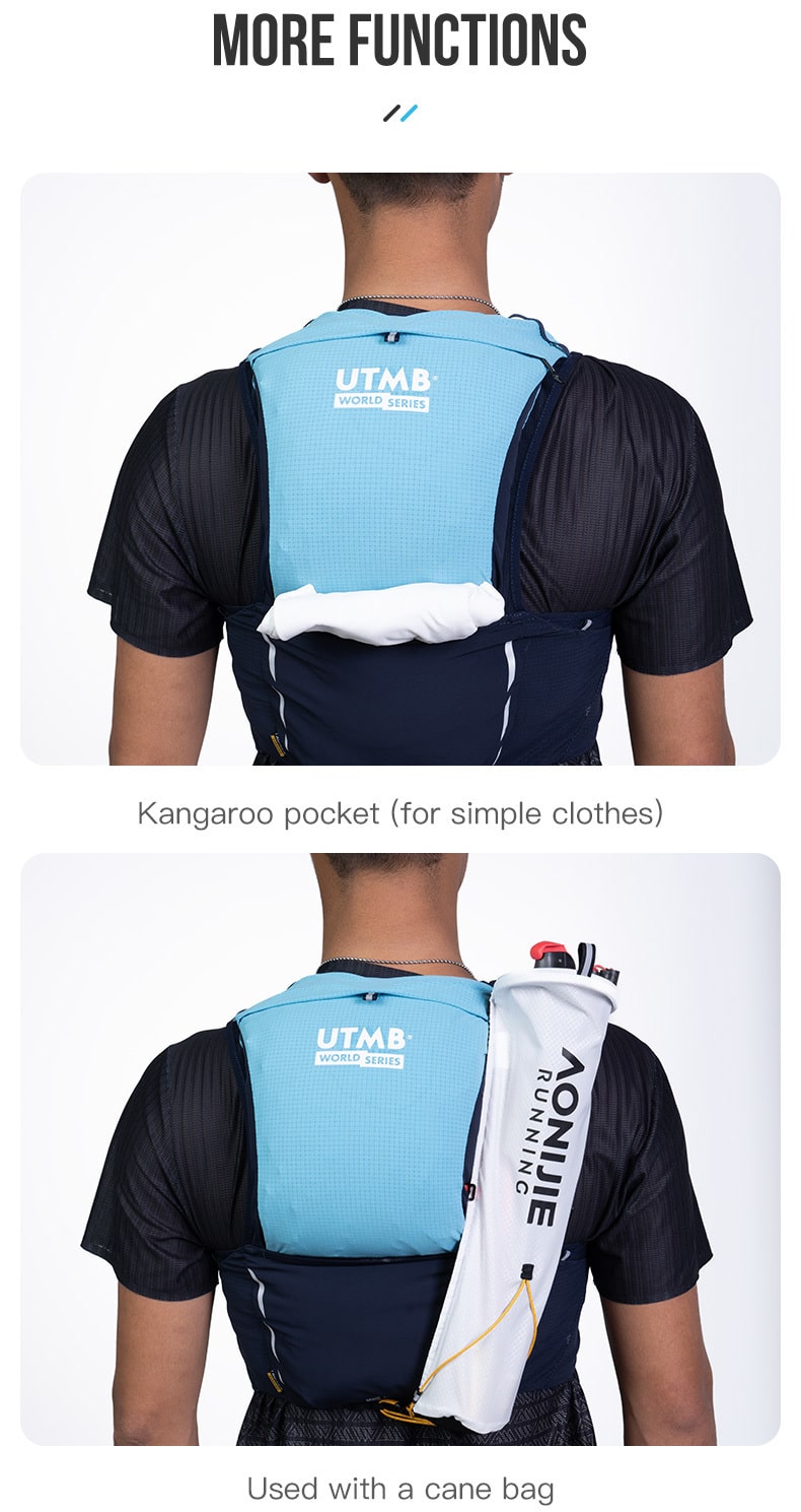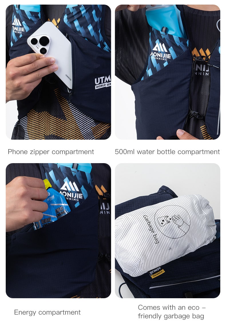 Esta mochila de trail AONIJIE Mont Blanc Series de 8 L, comarca oficial con UTMB, está inspirada en el Mont Blanc, el «Techo de Europa». Ligera (≈200 g), su capacidad de 8 L es ideal para carreras de trail de menos de 100 km.