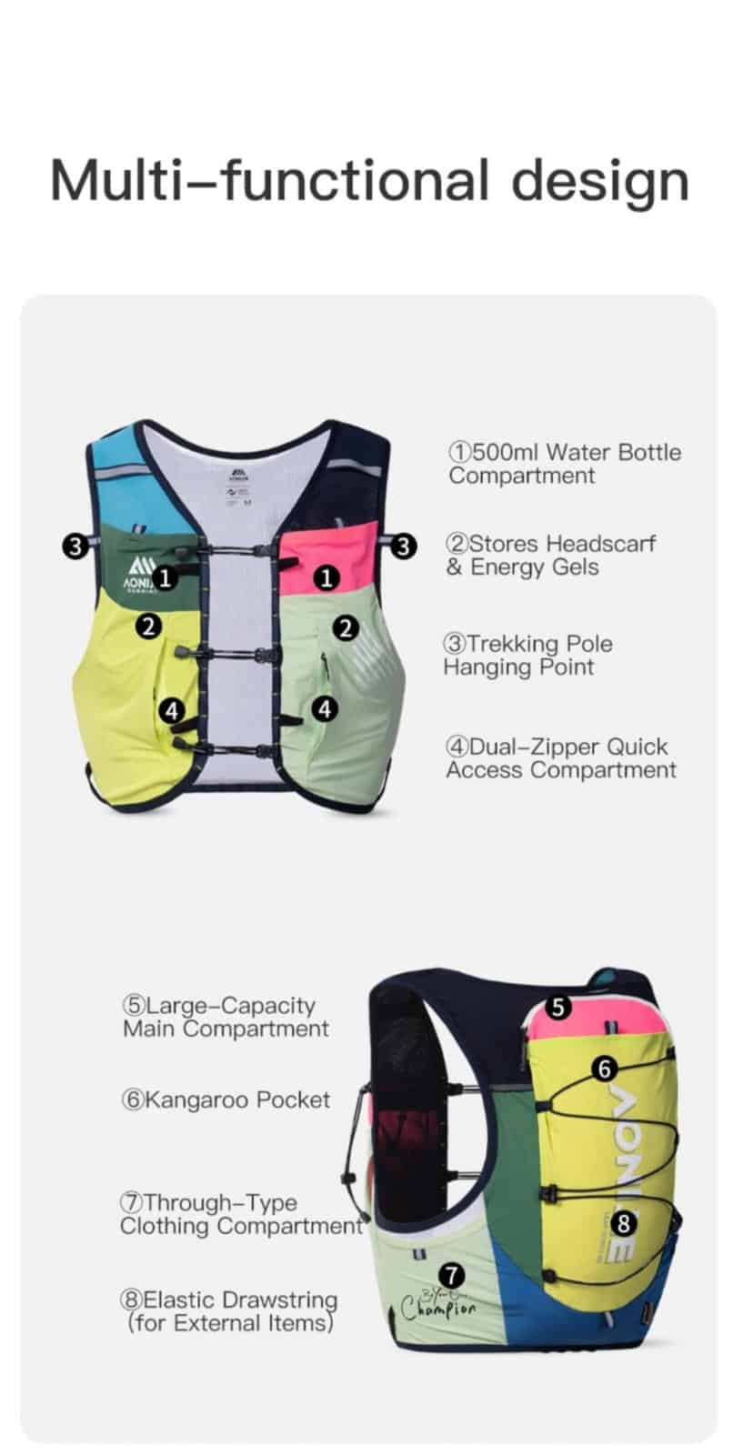 Sé el primero en valorar “Aonijie-Chaleco multicolor c9116 cap10L incluye 2 ánforas 500ml”