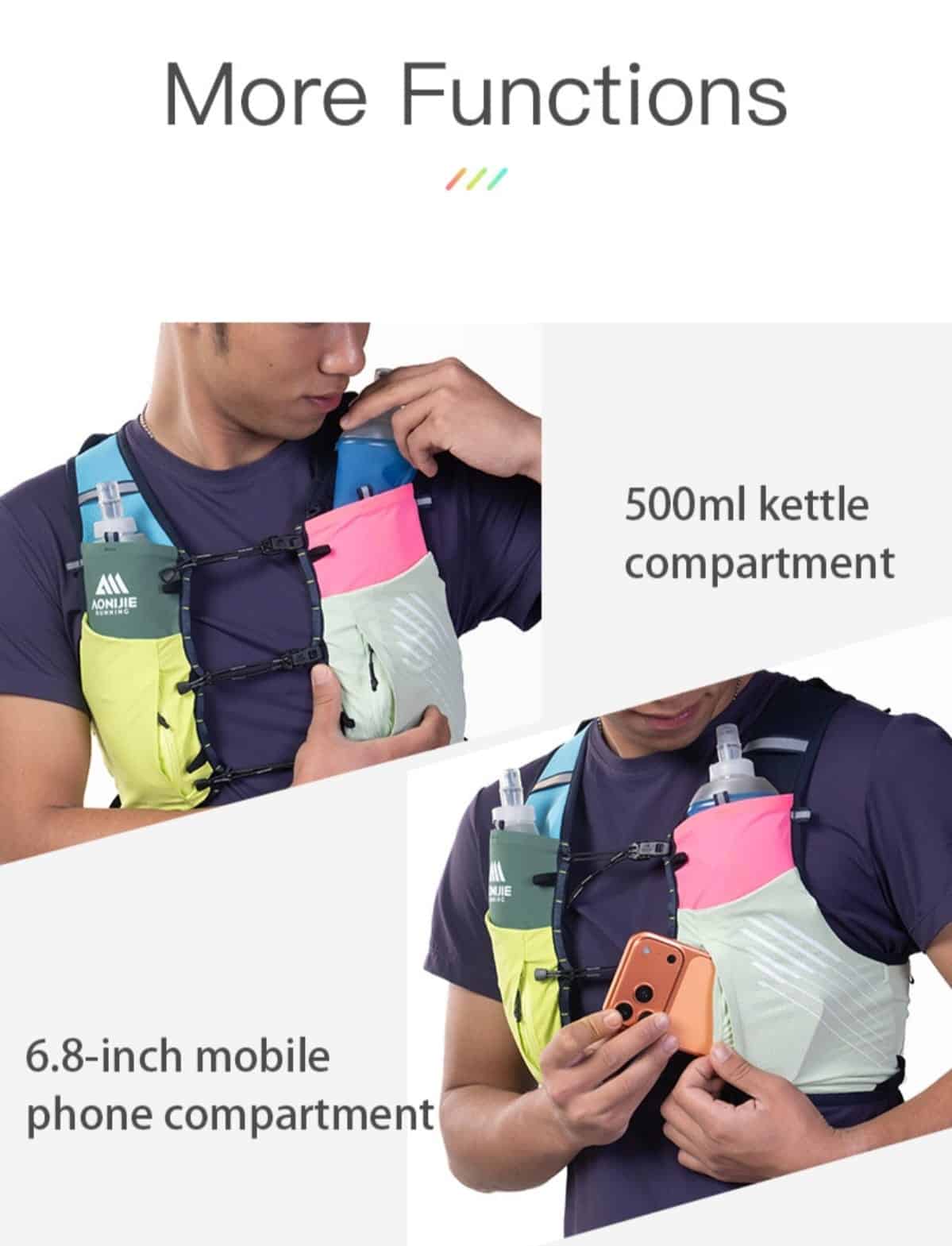 Aonijie-Chaleco multicolor c9116 cap10L incluye 2 ánforas 500ml