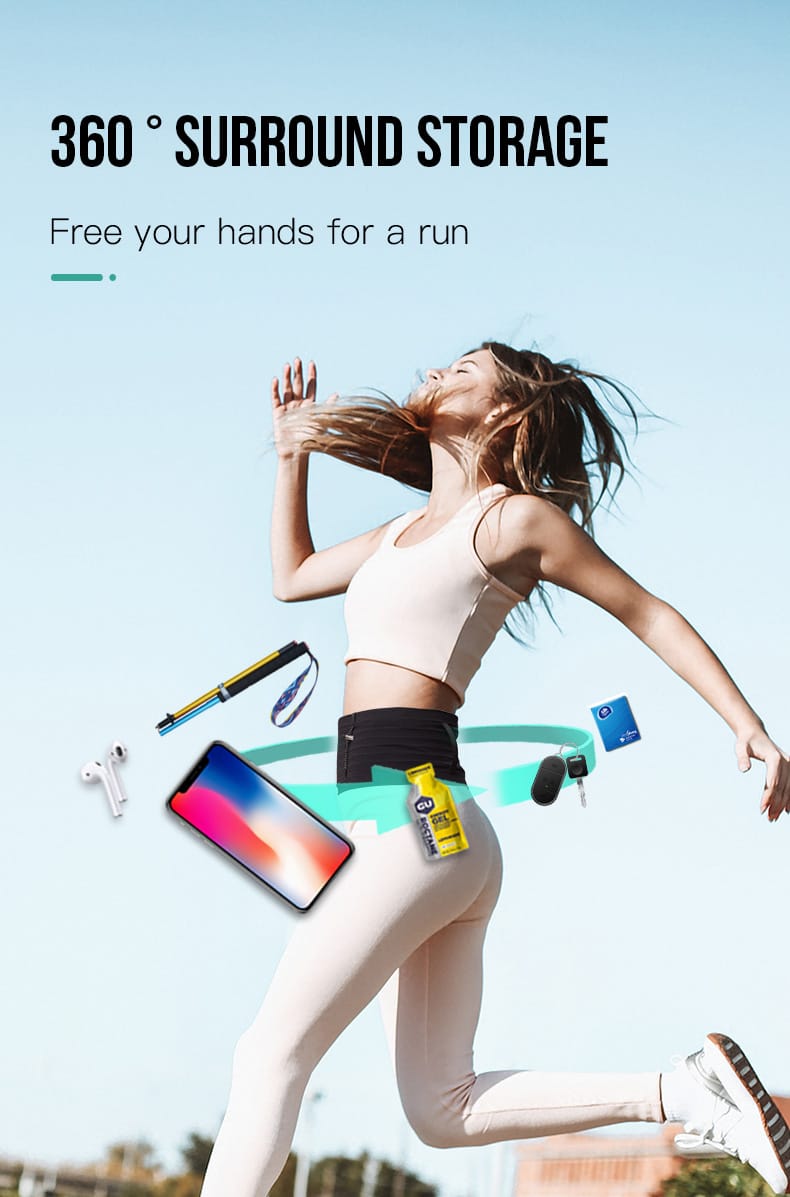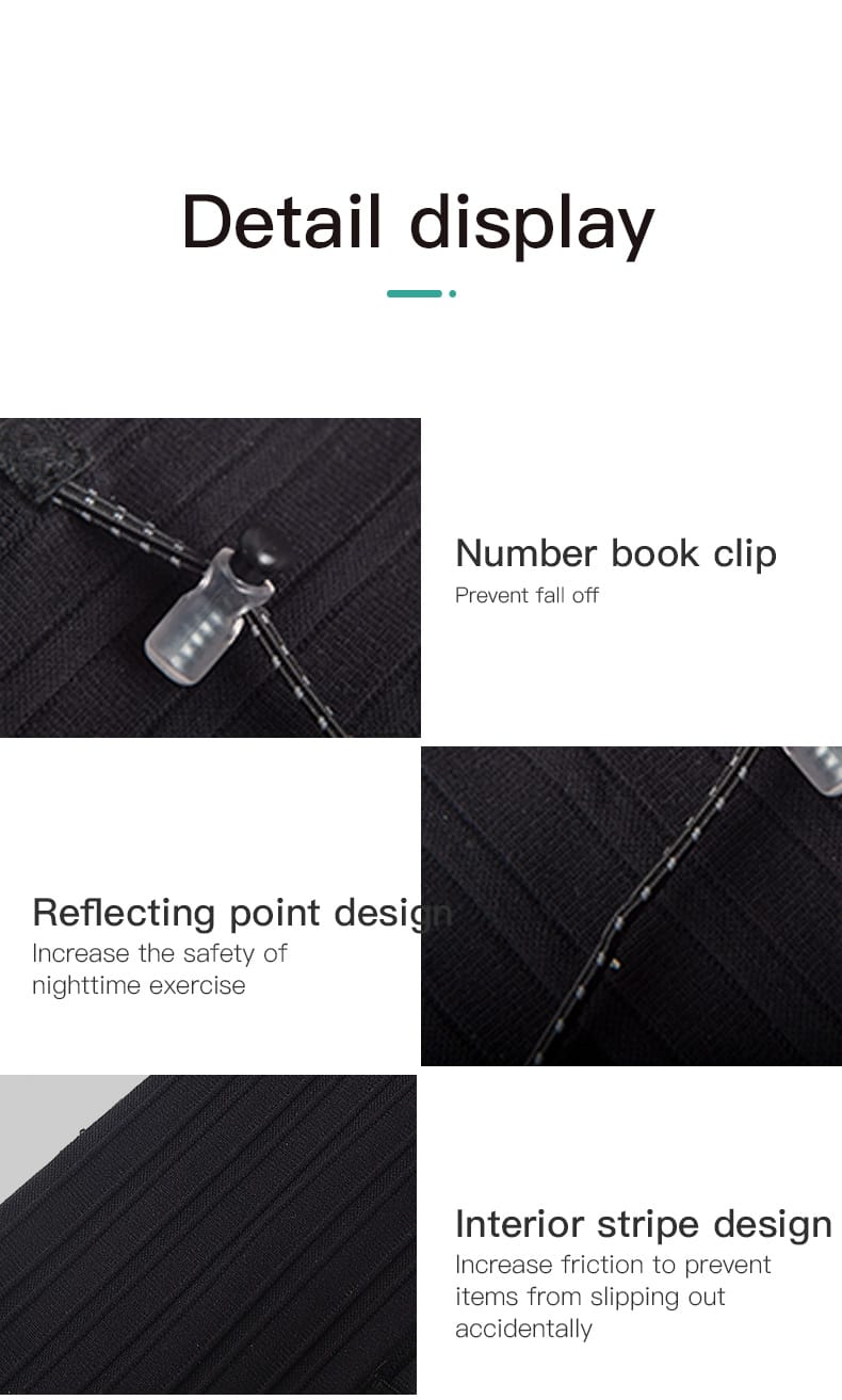 Detalles del Producto: A pesar de su diseño aerodinámico, los cinturones para correr ofrecen suficientes compartimentos para guardar objetos esenciales. Suelen contar con múltiples bolsillos, algunos con cremalleras para guardar objetos valiosos como smartphones, llaves y carteras, mientras que otros pueden tener aberturas elásticas para acceder rápidamente a artículos de uso frecuente, como geles energéticos o pañuelos. La disposición estratégica de estos bolsillos garantiza que todo esté organizado y a mano durante la carrera, eliminando la necesidad de rebuscar en la bolsa.