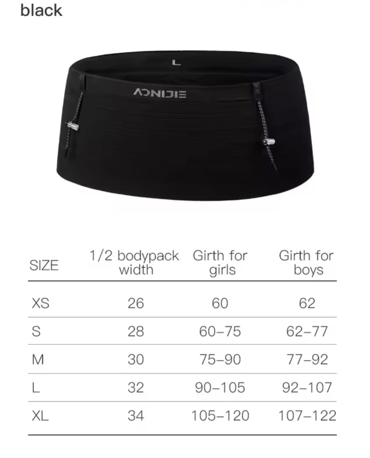 Talla: S 60-77 cm — M 75-92cm — L 90-107 — XL 105-122