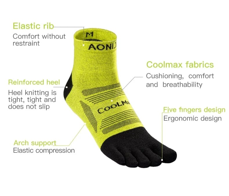 AONIJIE E4840 1 par calcetines con punta para correr para hombres y mujeres calcetines atléticos ligeros Coolmax de alto rendimiento con cinco dedos.