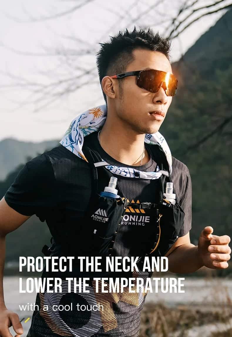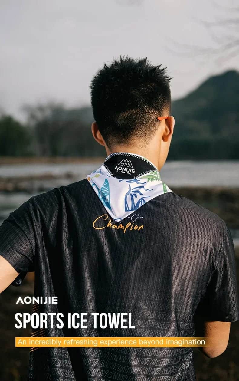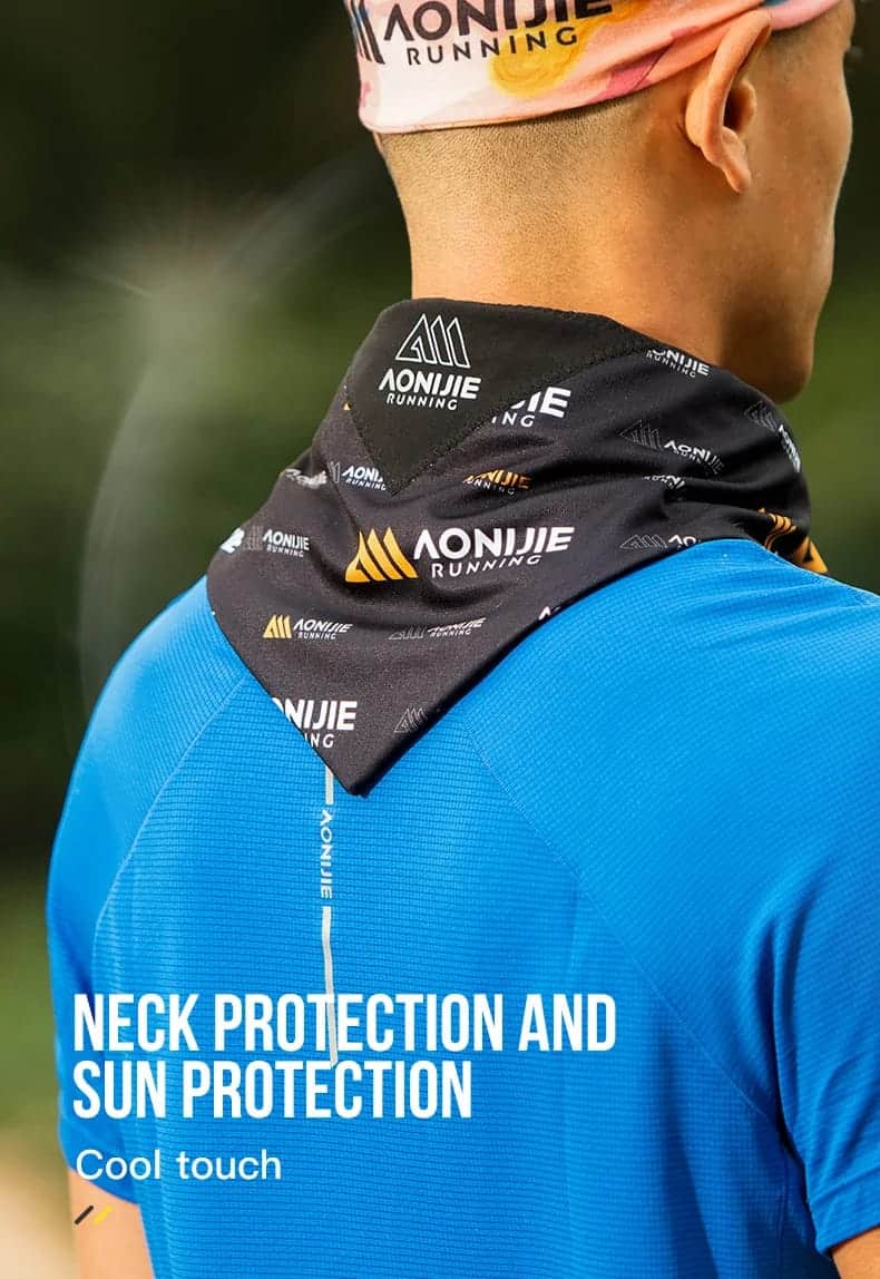 AONIJIE Toalla de hielo deportiva de secado rápido, protección solar para el cuello, triangular y redonda con bolsa de hielo para correr con cubitos de hielo para enfriar.