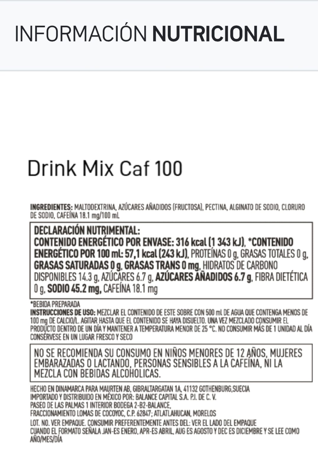 Cafeína, carbohidratos e hidratación. Todo al mismo tiempo, y en cantidades que hacen una diferencia. El Drink Mix 320 Caf 100 lo tiene todo. Con nuestra tecnología de hidrogel, incluso hemos logrado controlar la amargura que usualmente tiene la cafeína, sin agregar ningún tipo de ácido, saborizante o colorante.
