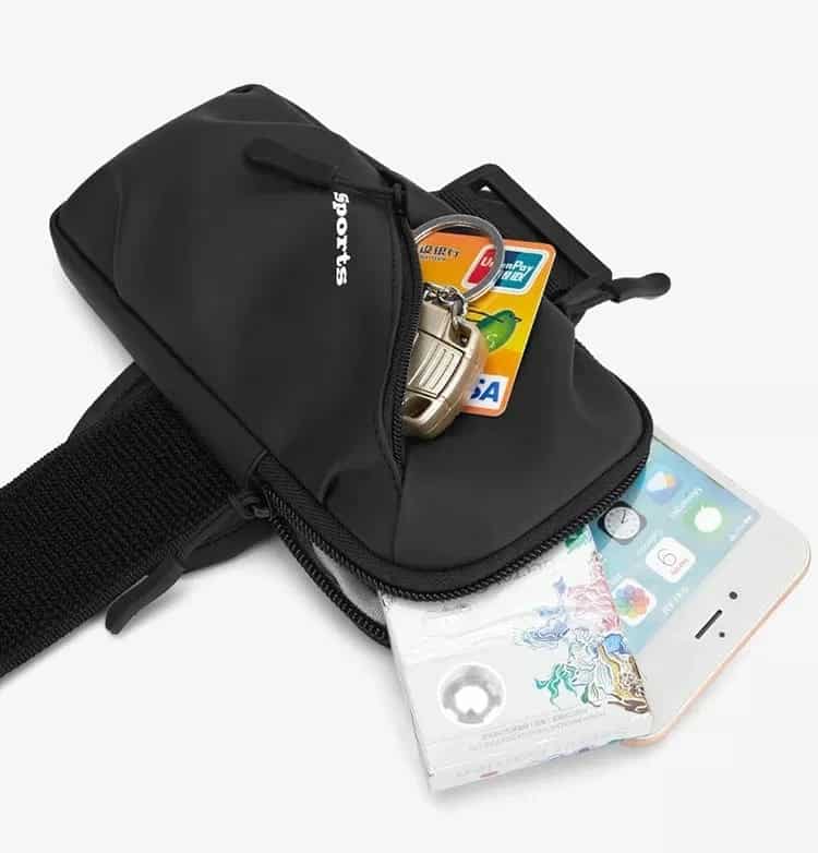 Gran capacidad dos bolsas con zipper, puedes llevar llaves, dinero, tarjetas, geles, papel y más.